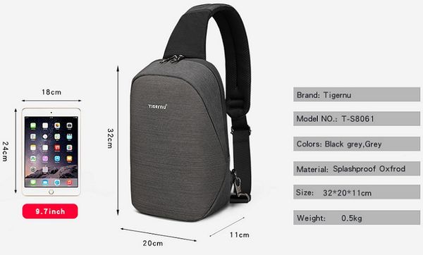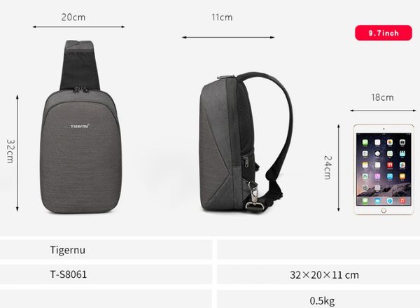 Thiết kế một quai năng động, balo đeo chéo qua vai và nằm gọn ở trên lưng. Kích thước balo L20cm*W11cm*H32cm phù hợp cho hoạt động vui chơi không cần đem theo nhiều đồ đạc và có ngăn chứa dành cho iPad. Chất liệu hạn chế thấm nước tốt tigernu TcG - S8061 được làm từ chất liệu Polyester vải lót bên trong balo 420D Nylon hạn chế thấm nước cực tốt. Nước sẽ nhanh chóng trượt khỏi bề mặt vải khi tiếp xúc trực tiếp, vải lót ngăn nước thấm vào không gian chứa đồ, tránh làm ảnh hưởng xấu đến đồ đạc đựng bên trong.