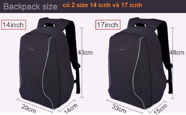 Ba lô Kích thước: 14 - 15inch:29cm*14cm*43cm / 15.6 - 17inch:33cm*15*48cm