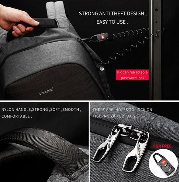 Balo laptop tigernu TcG-B3351. Đặc điểm cũng như sự khác biệt của tigernu T-B3351 mà shop muốn chia sẻ đến các bạn đó chính là khóa chống trộm gắn liền. Theo đó, tigernu T-B3351 được trang bị ổ khóa chống trộm . Khóa này được cài đặt bằng mật mã cố định hoàn toàn bí mật từ đó đảm bảo cho sự an toàn của các vật dụng bên trong balo. Chất liệu làm nên balo tigernu T-B3351 là loại chất liệu cao cấp và bền bỉ. Theo đó, chất liệu vải polyester cao cấp trượt nước và chống bám bụi rất tốt. Ngoài ra chất liệu làm nên balo có độ bền và chịu được lực cao. Hơn nữa, hệ thông khóa làm từ inox bên chắc không dễ bị gãy hay gỉ theo thời gian sử dụng. tigernu T-B3351 có thiết kế trẻ trung, năng động và thời trang. Đây là mẫu balo có hình dáng thon gọn, vuông vắn rất thích hợp với các bạn trẻ nhất là học sinh, sinh viên và nhân viên văn phòng.