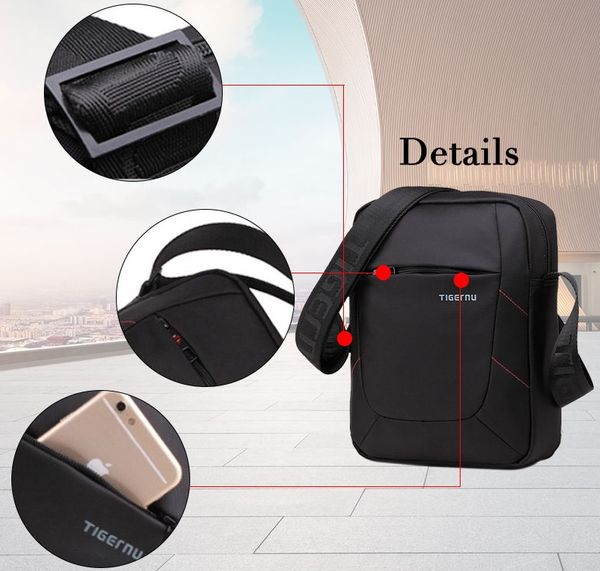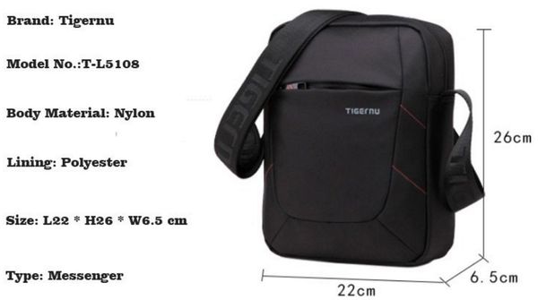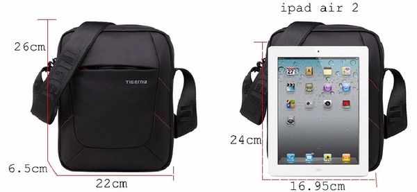 Chất liệu vải Polyester chống xước, chống thấm nước tốt, ngăn iPad riêng biệt và nhiều ngăn nhỏ Quai đeo chéo tùy chỉnh, khóa kéo kép bền, chống rạch, có nhiều màu, ngăn iPad chống sốc tổ ong dạng hạt. Tigernu sp cao cấp của hãng thời trang thế giới Kích thước: 26cm x 22cm x 6.5cm ( vừa các loại máy tỉnh bảng và iPad) Mầu sắc: Đen