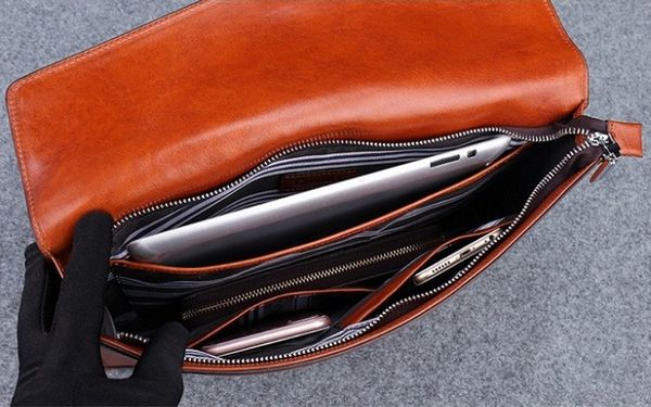 - Thiết kế 2 ngăn trong có khóa kéo để thẻ, card/ tiền ĐT/ giấy tờ /iPad ....
